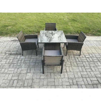 Fimous Wicker PE Outdoor Rattan Garden Furniture Arm Chair And Table Dining Sets 4 Seater Square Dark Grey Mixed