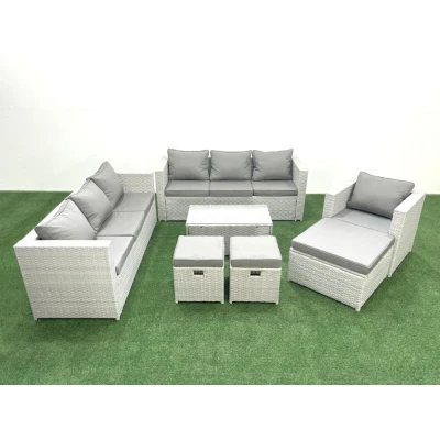 Fimous Wicker PE Rattan Sofa Garden Furniture Set with Armchair Oblong Coffee Table 3 Footstools Light Grey Mixed