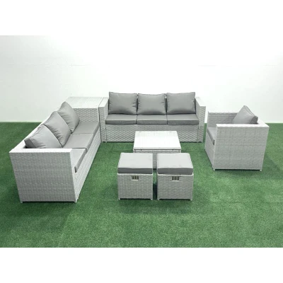 Fimous Wicker PE Rattan Sofa Garden Furniture Set with Armchair Square Coffee Table 2 Small Footstools Side Light Grey Mixed