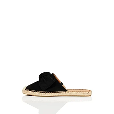 FIND Bow Mule Leather Espadrille, Women’s Closed Toe Sandals, Black (Black Black), 3 UK (36 EU)