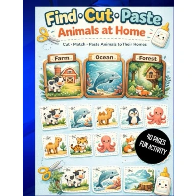 Find Cut Paste Animals at Home Activity Book: Fun Scissor Skills & Learning for Kids