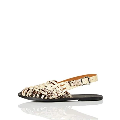 FIND Weave Slingback Leather, Women’s Open Toe Sandals, Beige (Snake Natural), 5 UK (38 EU)