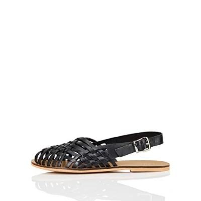 FIND Weave Slingback Leather, Women’s Open Toe Sandals, Black, 6 UK (39 EU)