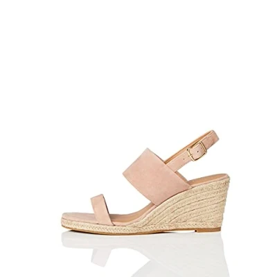 FIND Wedge Leather Espadrille, Women’s Open Toe Sandals, Pink (Pink Pink), 8 UK (41 EU)