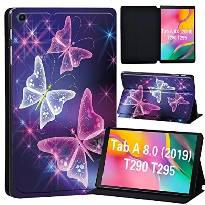 FINDING Case Galaxy Tab A 8.0 2019 T290 T295, Slim Light Cover Stand Hard Shell Folio for inch Tablet Model SM (Wi Fi) T295 (LTE) (three purple butterfly)
