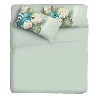 Very soft 100% pure cotton fabric of 60 threads square centimeters hand percale Very high resolution photo print that ensures durability and colour brilliance after washing Composed of: Fitted sheet with corners. 90 x 200 cm maxi corner 25 cm, fitted sheet / bedspread. 160 x 300 cm, maxi size, 1 pillowcase with two shuttles 52 x 83 cm Flat sheet with rotary print and plain frill European product
