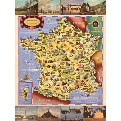 Fine Art Prints Batany 1947 Pictorial Map France Railway Tourism Large Print Poster Wall Decor Picture,24 x 18 inches