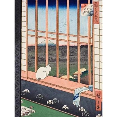 Fine Art Prints Hiroshige Asakusa Fields 100 Views Edo Cat Vintage Japanese Painting Large Print Poster Wall Decor Picture,24 x 18 inches