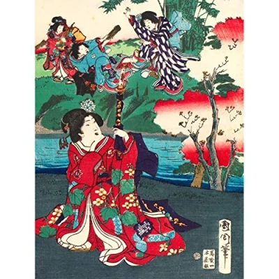 Fine Art Prints Kunichika Tale Genji Women Japanese Painting Print Canvas Premium Wall Decor Poster Mural,16 x 12 inches