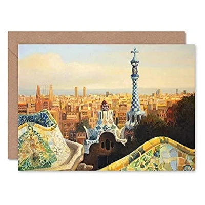 Fine Art Prints Park Guell Painting Barcelona Greeting Card With Envelope Inside Premium Quality
