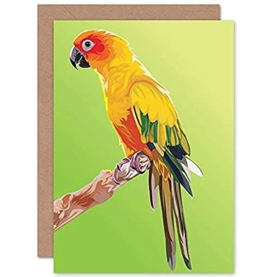 Fine Art Prints Parrot Illustration Colourful Greeting Card With Envelope Inside Premium Quality