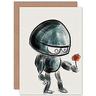 Fine Art Prints Robot With Flower Illustration Greeting Card Envelope Inside Premium Quality