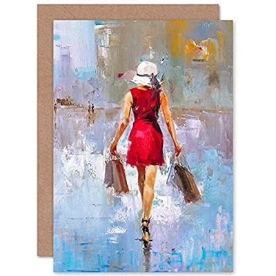 Fine Art Prints Woman Shopping City Greeting Card With Envelope Inside Premium Quality