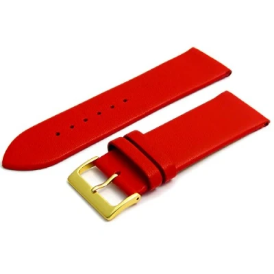 Fine Calf Leather Watch Strap Band 30mm Red with Gilt (Gold Colour) Buckle. Free Spring Bars (Watch Pins)