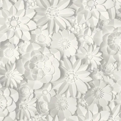 WallpaperDirectA statement three-dimensional design which features a wall of detailed florals. Seen here in the White colourway.