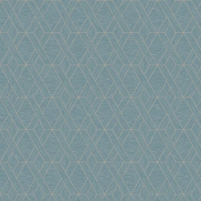 A contemporary geometric trellis style design with a faux grasscloth effect background. Seen here in the Teal colourway.