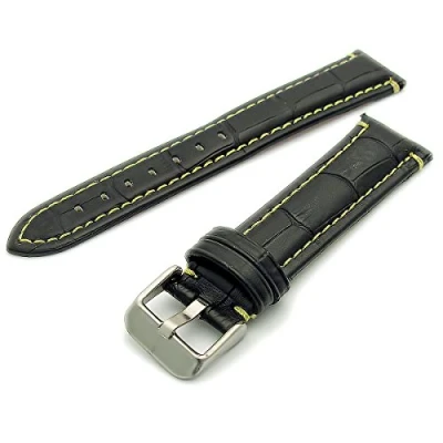 Fine Padded Alligator Grain Watch Strap Band Black Coloured Stitching 20mm Yellow