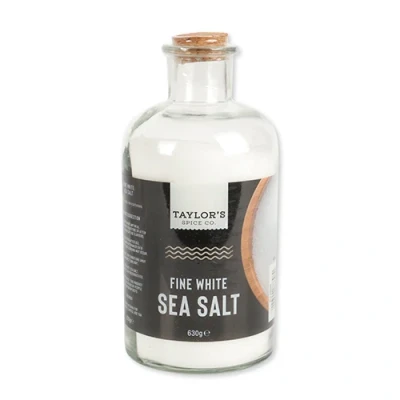 Perfect to complement any meal, simply sprinkle over food before and after cooking and enjoy the flavours. Available in an attractive, clear bottle with a cork lid that you can replace after use, this sea salt bottle would also look great decorated around you kitchen and you can reuse the bottle after for other items!. 1 x Taylor's Spice Co Fine White Sea Salt 630g. Fine white sea salt. Clear bottle with cork lid. Suitable for vegetarians. H 17cm x W 8cm (approx)