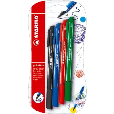 Fineliner STABILO pointMax Pack of 4 Ultramarine, Black, Carmine, Green