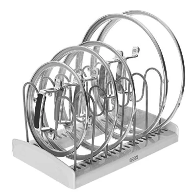 FiNeWaY Saucepan Lid Organiser Plate Drying Rack Casseroles Holder Kitchen Pan Pot Dish Storage Pantry Cabinet Tidy 7 Lids Divider