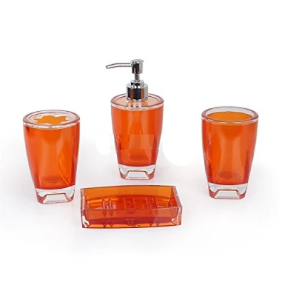 Fingey Modern Design 4 Piece Bathroom Accessory Set, Soap Dish, Tooth Brush Holder, Dispenser, Rinse Cup (Orange)
