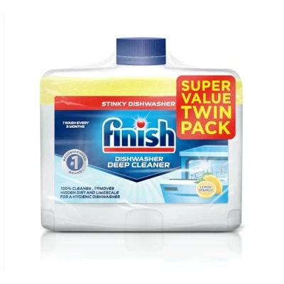 DEEP CLEANING ACTION – Finish Dishwasher Cleaner is formulated to remove hidden grease, grime, and limescale build-up inside your dishwasher. It targets hard-to-reach internal components including spray arms, filters, and pipes. Helps improve cleaning efficiency when used regularly. Designed for monthly maintenance cycles. HELPS PREVENT ODOURS – Regular use helps neutralise unpleasant smells that can develop inside the machine. Acts on residue build-up that may cause lingering odours over time. Leaves the dishwasher interior smelling fresh after use. Use with an empty machine for best results. MAINTAINS MACHINE PERFORMANCE – Supports the longevity and proper functioning of your dishwasher by cleaning areas not accessible during standard wash cycles. Helps protect internal parts from limescale. Intended to enhance overall appliance performance. Can be used alongside Finish dishwasher tablets. EASY TO USE – Simply remove the sticker and place the bottle upside down in the lower rack of an empty dishwasher. Run on the hottest cycle to activate the formula. No additional steps or tools required. Follow label instructions for safety and effectiveness. 2 x 250ML TWIN PACK – Supplied as a twin pack with two 250ml bottles for multiple treatments. Ideal for scheduling regular cleaning over several months. Store in a dry, cool place between uses. Use one bottle per cleaning cycle.