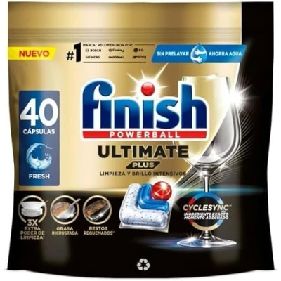Finish Powerball Ultimate Plus All in 1 Dishwasher Tablets Cyclesync Technology Intensive Cleaning and Diamond Shine 40