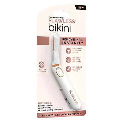Finishing Touch Flawless Bikini Trimmer & Hair Remover, Shaver Pubic for Women, Dry Use Intimate Razor, Painless Line Removal with LED Light, All Skin Types