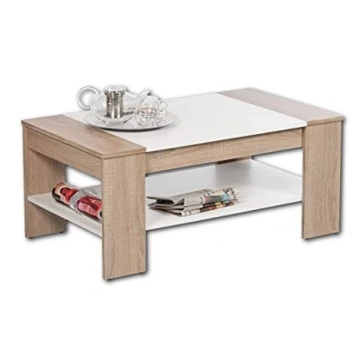 FINLEY Plus Coffee Table in Sonoma Oak Look, White, Spacious Sofa with Drawer and Shelf for Your Living Area, 100 x 44 58 cm (W H D)