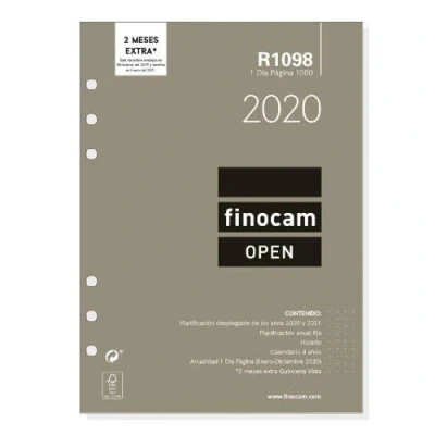 Finocam 711680020 Annual Refill (January 2020 December 2020), 1 Day Page Open R1098 Spanish, 22.5 x 16 cm