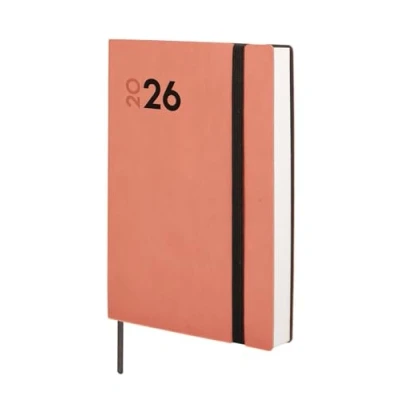 Finocam Agenda 2026 1 Day Page January December (12 months) Annual with Elastic Band and Dot Ribbon Mara Soft Cover Coral Spanish