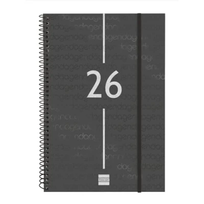 DURATION: January 2026 - December 2026 (12 months) INTERIOR: Vertical Week View. Full week view in vertical. With half an hour. Article language: Spanish. With information about Spanish holidays. CONTENT: The annuity of the agenda includes information relating to: name, national holidays, changes of season and beginnings of the Chinese, Muslim, Orthodox and Hebrew New Years. The diary also has other extra content: personal data, schedules, calendars, yearly planning for the year and the following year, international holidays, how to search on Google, keyboard usage, map of Europe and time zones, notes sheets and sheets for telephones, addresses and e-mails. MATERIAL: Polypropylene covers, simple metal spiral and paper. 80 g/m². Finocam items are designed to optimize your personal organization, making your life more convenient, and at the same time more beautiful.