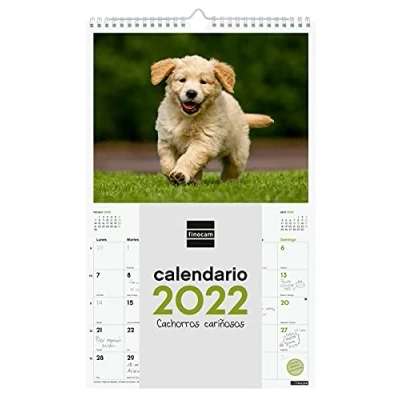 Finocam Calendar 2022 250 x 400 mm Spiral Wall Images for Writing Puppies Spanish