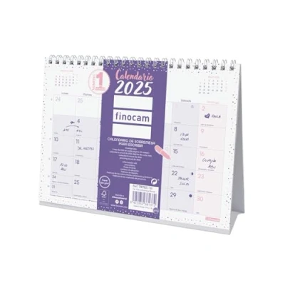 Finocam Chic Desktop Calendar to Write 2025 Month View January December (12 months) Purple Spanish