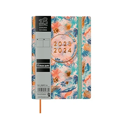 Period: July 2023 – December 2024 (18 months) Inside: Page a day. Ample writing space for each day. With thirty-minute slots. Multilingual Planner: English, French, Italian, German, Spanish, Dutch, Portuguese and Catalan. With information on the year’s holidays in the following countries: Argentina, Australia, Belgium, Brazil, Switzerland, Chile, Germany, Spain, France, the United Kingdom, Ireland, Italy, Luxembourg, Monaco, Mexico, the Netherlands, Poland, Portugal, Romania, Russia, Sweden, Ukraine, and the United States. Contents: The planner’s yearly calendar includes information on holidays. The planner also has other extra content: Personal data, calendars, dates to highlight, country codes, map of time zones, international holidays, clothing sizes, schedule, things to do, 18-month planning grid, pages for notes, and contact pages. Material: Polyurethane and FSC-certified eco-friendly paper. 80g/m2. Finocam products are designed to help you stay organised, making your life more practical, comfortable and pleasant. Any product bought from Finocam will be high quality, sustainable and environment friendly.