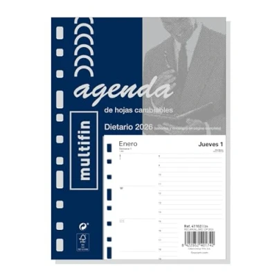 DURATION: January 2026 - December 2026 (12 months) INTERIOR: 1 Day Page. Ample writing space for every day. With hours from 8:00h to 21:00h. Saturday and Sunday in full page. Article language: Spanish. With information about Spanish holidays. CONTENTS: The annuity of the agenda includes information relating to: name, national holidays, elapsed days and days to pass and beginnings of the Chinese, Muslim, Orthodox and Hebrew New Years. The agenda also has other extra content: personal data, calendars and fold-down annual plan. MATERIAL: Paper - 70 g/m². Finocam items are designed to optimize your personal organization, making your life more convenient, and at the same time more beautiful.