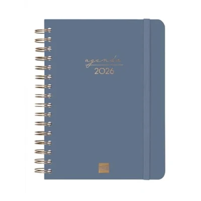 Finocam Spiral Agenda 2026 1 Day Page January December (12 months) Annual with Elastic Band Double Hard Cover Soul Blue Catalan