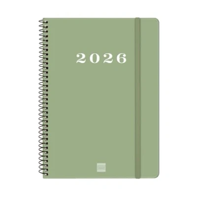 Finocam Spiral Agenda 2026 Week to View Horizontal January December (12 months) Yearly with Elastic Band Hard Cover My Green Catalan