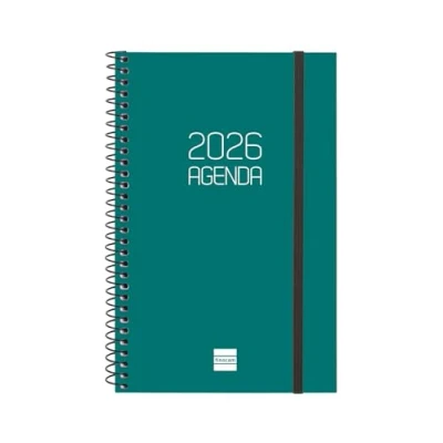 Finocam Spiral Agenda 2026 Week to View Horizontal January December (12 months) Yearly with Rubber Opaque Polypropylene Cover Green Catalan