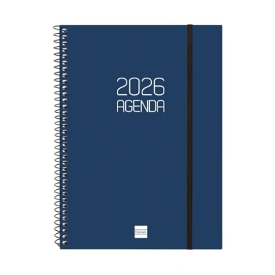 Finocam Spiral Diary 2026 Horizontal Layout Week January December (12 Months) Yearly Planner with Elastic Matt Polypropylene Cover Blue Italian