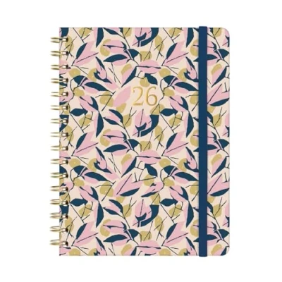Finocam Spiral Planner 2026 Vertical Week to View January December (12 months) Annual with elastic band Double Hardcover You Leaves International