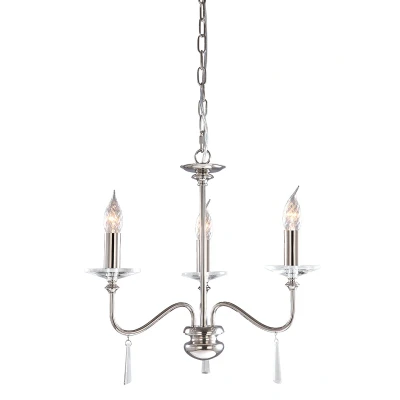 Finsbury Park Chandelier 3 Light Polished Nickel Finish, E14
