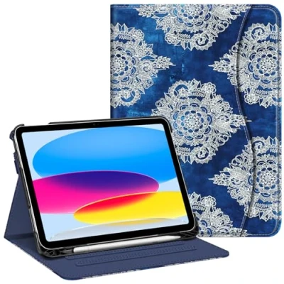 FINTIE Case Compatible with iPad 10th Generation (2022) 10.9 Inch, Multi Angle Viewing Protective Stand Cover Pencil Holder & Pocket, Auto Sleep/Wake, Indigo Dreams