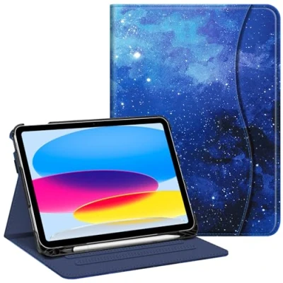 FINTIE Case Compatible with iPad 10th Generation (2022) 10.9 Inch, Multi Angle Viewing Protective Stand Cover Pencil Holder & Pocket, Auto Sleep/Wake, Starry Sky