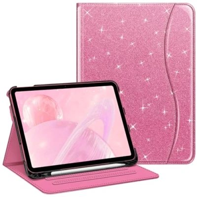 FINTIE Case for iPad (A16) 11th Generation 11 Inch (2025), 10th 10.9 (2022), Multi Angle Viewing Stand Cover w/Pencil Holder & Pocket, Auto Sleep/Wake, Shiny Pink