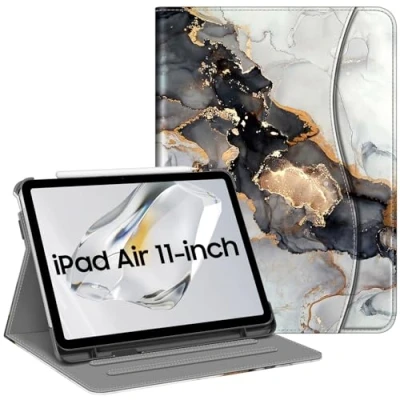 FINTIE Case for iPad Air 11 Inch (2025/2024), 5th (2022) / 4th Generation (2020) 10.9 [Multi Angle Viewing] Folio Stand Protective Cover with Pencil Holder & Pocket, Cloudy Marble