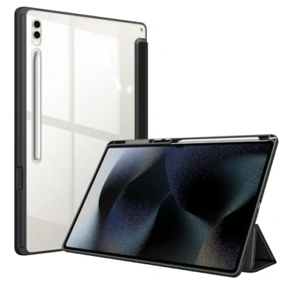 【Perfect Compatibility】This case is compatible with Samsung Galaxy Tab S8 Ultra 14.6 inch (Model SM-X900/X906) 2022 Release Tablet. It will NOT work for any other model device 【Clear Back】The crystal clear back cover could show your device's classic styling color and the logo 【Premium Material】Hardshell back cover with flexible TPU bumper protects your tablet from shocks, drops and impacts. Soft microfiber interior front prevents your tablet from scratched 【Adjustable Stand Angles】Tri-fold front cover has flip capability to transform the Samsung Tab S8 Ultra case into a viewing stand and keyboard stand 【Auto Wake/Sleep】Magnetic closure, automatically wakes or puts your new Tab S8 Ultra to sleep when the lid is opened and closed (only when the function of your tablet turned on)