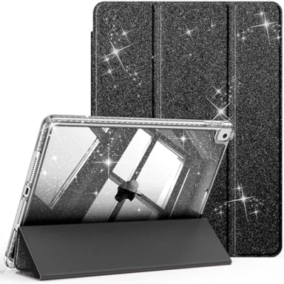FINTIE Glitter Case for iPad 9th / 8th 7th Generation (2021/2020 2019) 10.2 Inch [Built in Pencil Holder] Sparkly Shockproof Cover with Shiny Clear Back Shell, Auto Wake/Sleep, Black