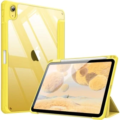 FINTIE Hybrid Case Compatible with iPad 10th Generation 2022 (10.9 Inch) [Ultra Slim] Shockproof Clear Cover Built in Pencil Holder, Auto Wake/Sleep, Yellow