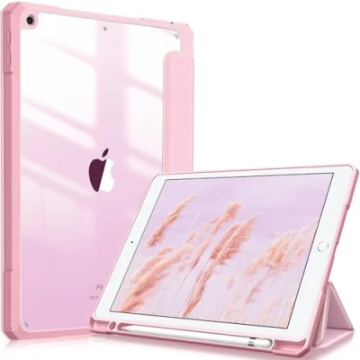 FINTIE Hybrid Case Compatible with iPad 9th / 8th 7th Generation (2021/2020/2019) 10.2 inch Shockproof Cover Clear Back Shell w/Pencil Holder, Auto Wake/Sleep, Baby Pink